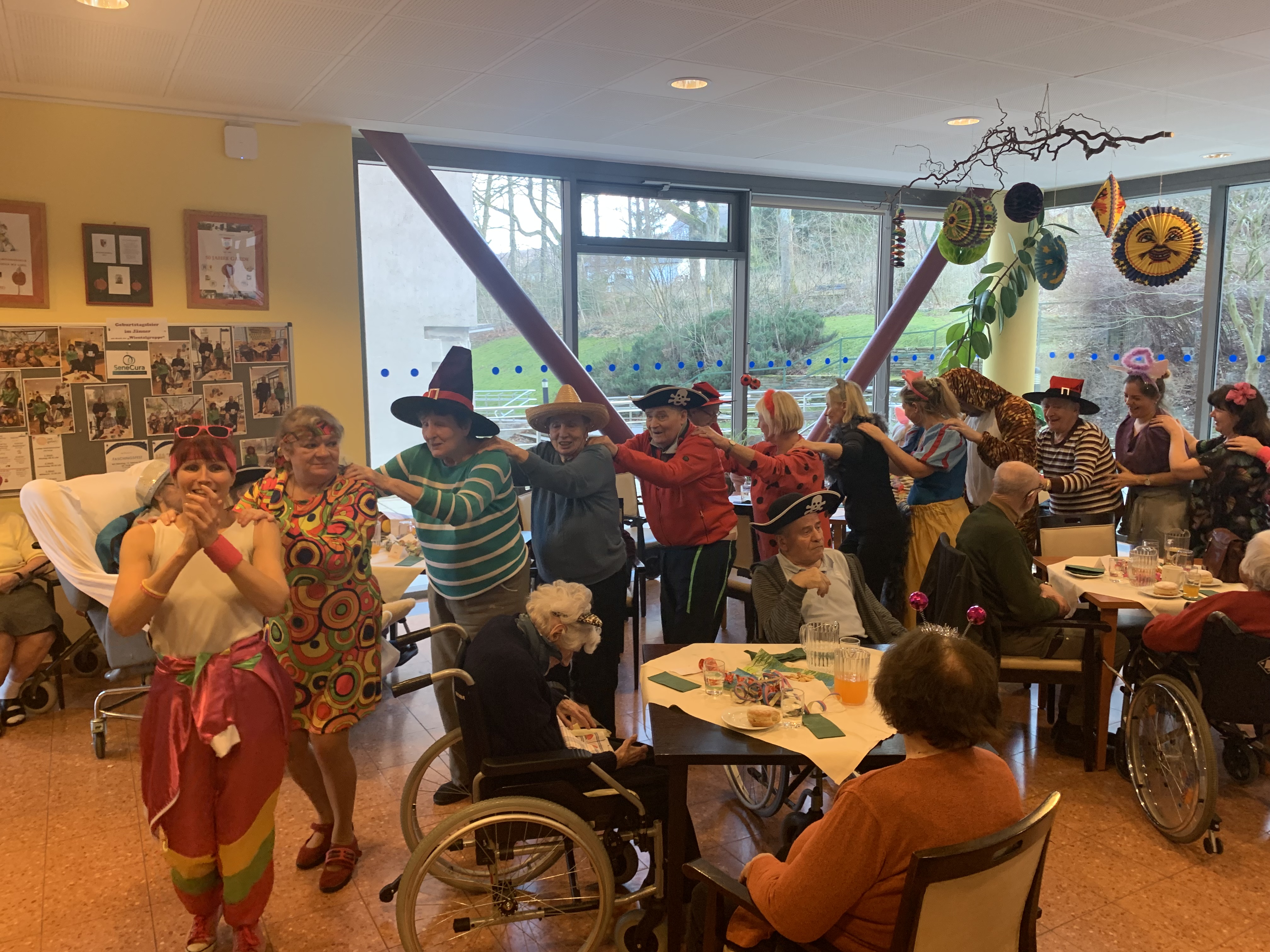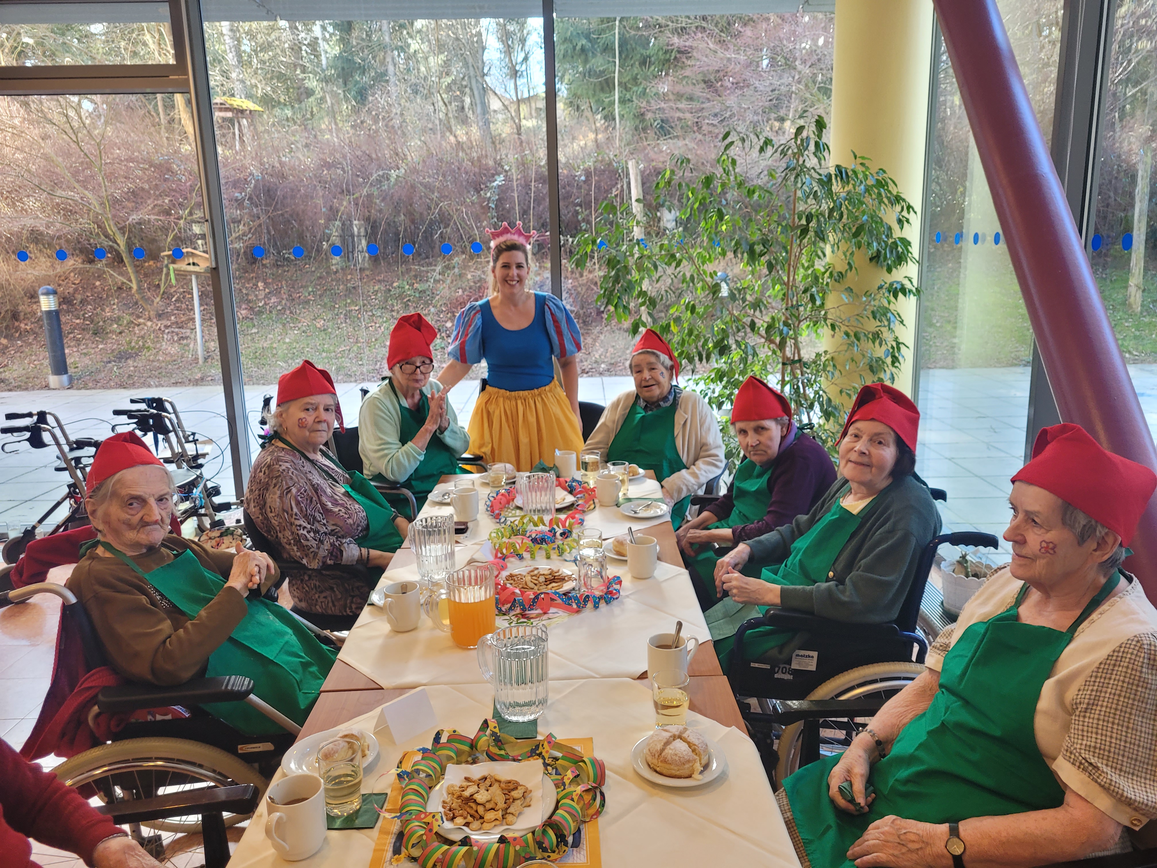 Im SeneCura Sozialzentrum Pressbaum wurde der Fasching mit allem was dazu gehört ausgelassen gefeiert. Die Mitarbeiter:innen zeigten sich von ihrer kreativen Seite und sorgten für lustige Verkleidungen. Selbstverständlich durften frische Faschingskrapfen nicht fehlen und dazu gab es ein Gläschen Wein. Für heitere Musik sorgte das Duo „Uschi & Herbie“ und so wurde nicht nur mitgesungen und geklatscht, sondern auch viel getanzt. Die Hausleiterin Martina Schmit führte eine Polonaise an, die sich durch den festlich geschmückten Saal schlängelte. Dazwischen erzählte die ehrenamtliche Mitarbeiterin Hermi Winter lustige Witze und Seniorenbetreuerin Ruth Lerz führte durch einen zuvor in der Bewegungsrunde einstudierten Sitztanz. Riesengroßen Applaus gab es für die Mitarbeiterin Sandra Scheiblecker, die mit einigen ihrer Bewohner:innen als Schneewittchen und die sieben Zwerge verkleidet war und den ersten Platz bei der Kostümprämierung erreichte. Als Preis erhielten sie einen Korb mit köstlichen Leckereien über den sich alle sehr freuten. Zum Abschluss wurde noch ein gemeinsames Abschiedslied gesungen und alle waren sich einig, dass das ein besonders gelungenes Faschingsfest war.