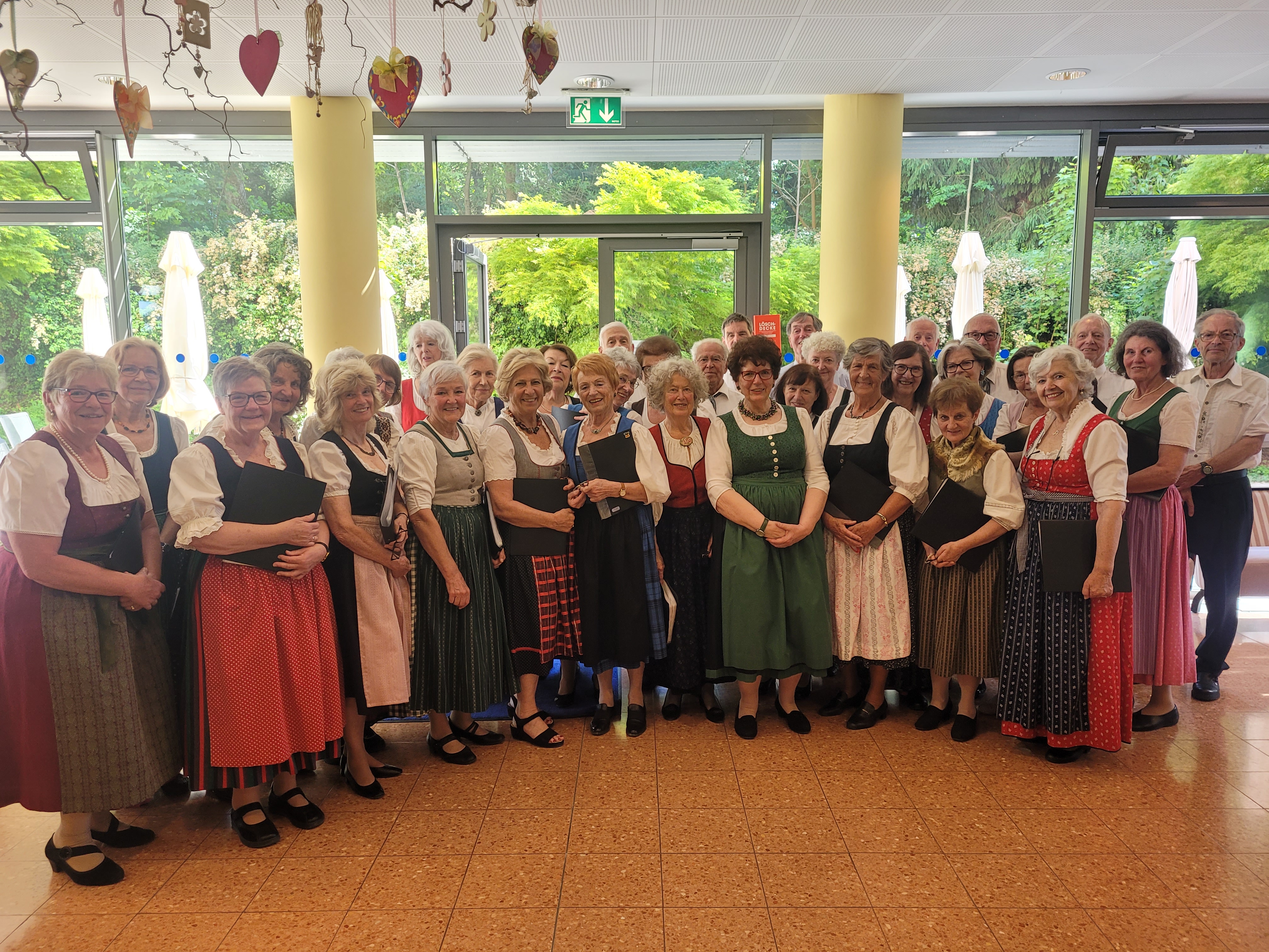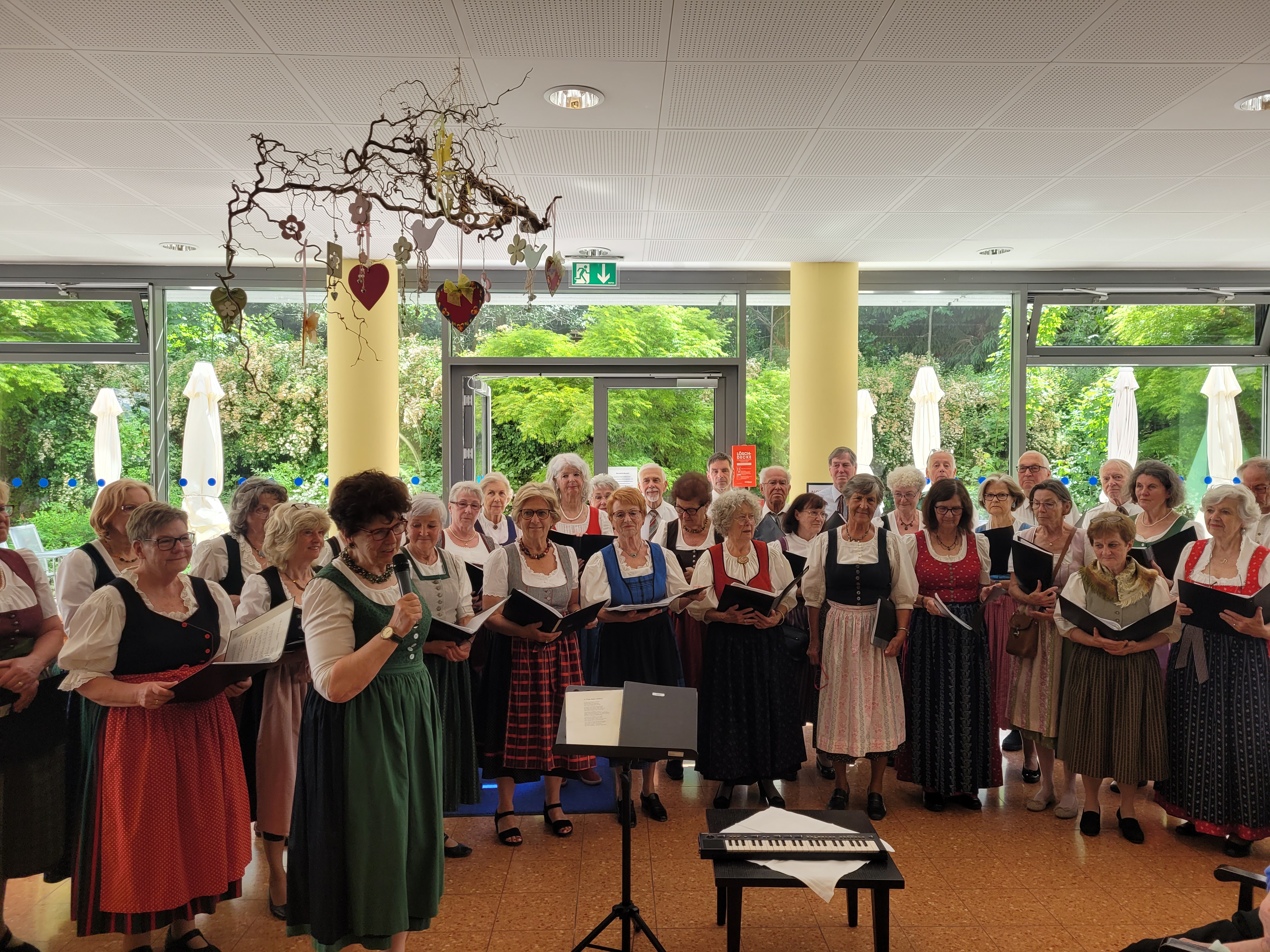 Am 15. Mai 2024 wurden die Bewohnerinnen und auch die Bewohner anlässlich des Muttertags geehrt. Die Damen wurden mit selbstgebastelten und handbemalten Herzen überrascht, denn die ehrenamtlichen Mitarbeiterinnen, die Seniorenbetreuerinnen und selbst der Lebensgefährte von Anneliese haben sich kreativ gezeigt und wunderschöne Muttertags-Herzen kreiert. Anschließend gab es ein wunderbares Konzert der Singgemeinschaft Gablitz. Besonders schön war es, dass der Chor mit zahlreicher Besetzung für die Bewohner:innen gesungen hat. Die Singgemeinschaft brachte Lieder rund um den Globus, aber auch Lieder, die alle zum Mitsingen anregten. Als besondere Zugabe wurde das Lied „wahre Freundschaft“ gemeinsam gesungen, was viele Emotionen bei den Bewohner:innen hervorrief. Die Leitung des Konzerts hatte wieder Angelika Heissig, die charmant den Nachmittag moderierte. So wurde fleißig mitgesungen sowie mitgeschunkelt und es wurden bei vielen der Bewohner:innen Kindheitserinnerungen wach.
