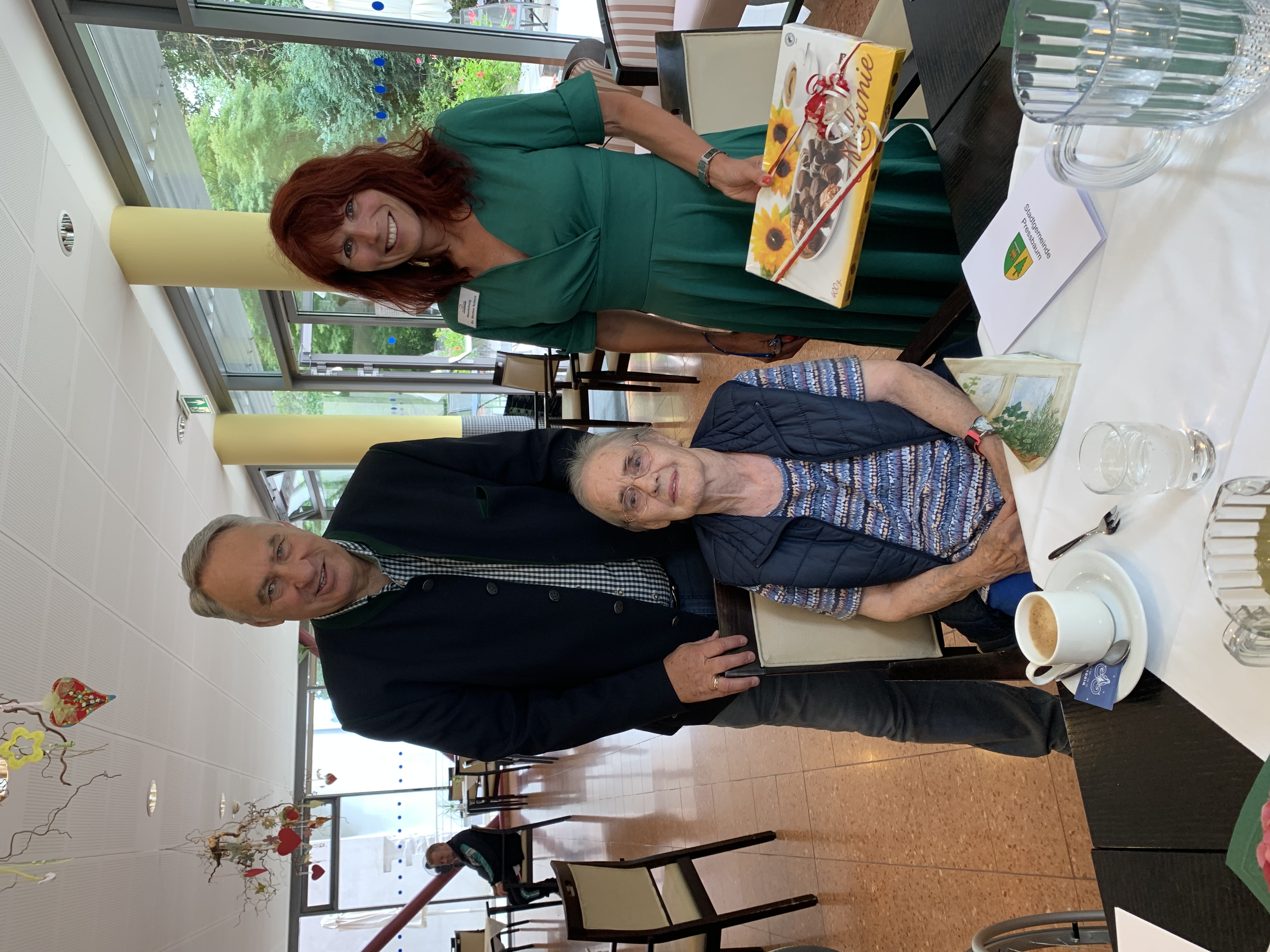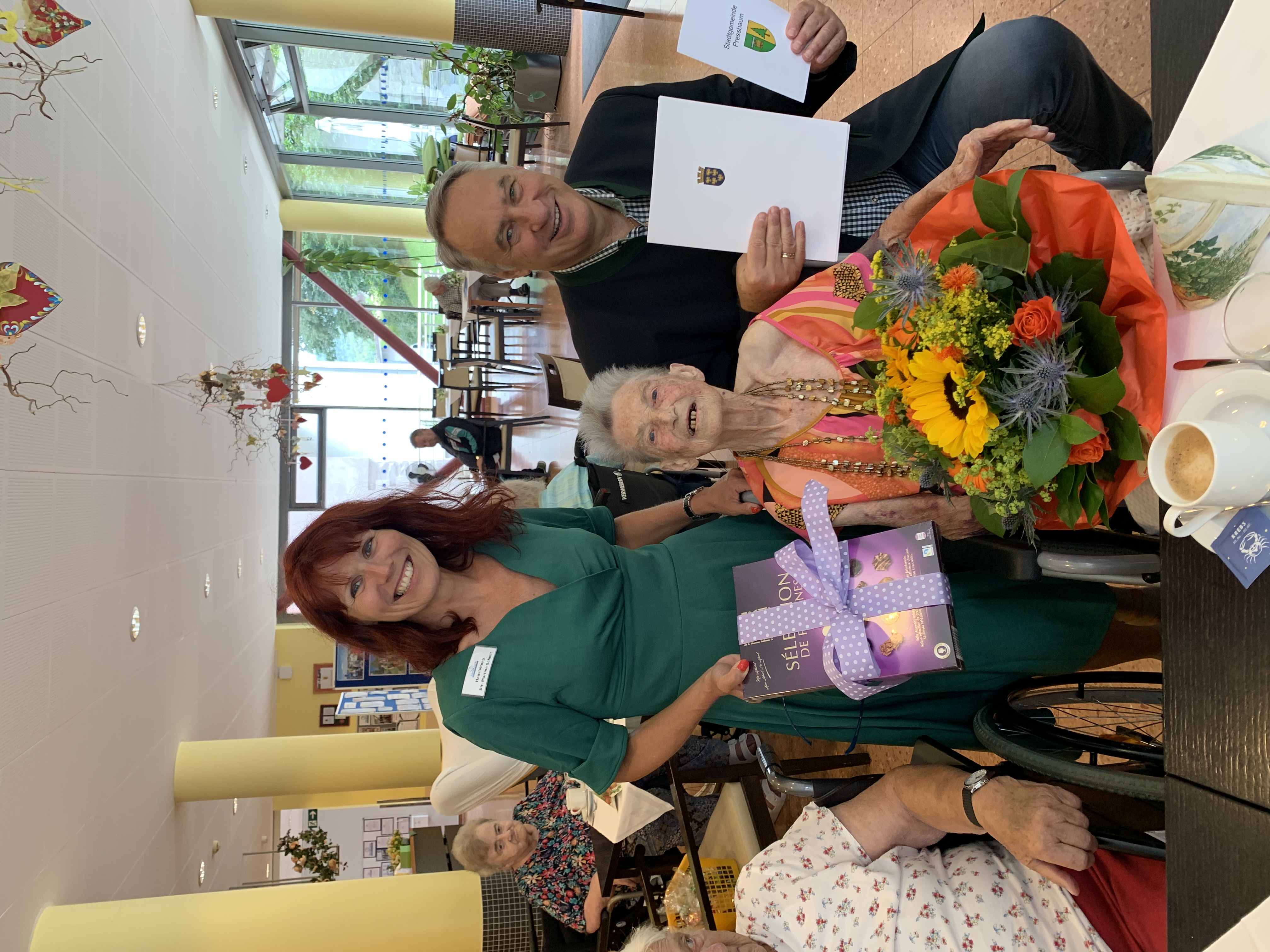 Für alle Bewohner:innen des SeneCura Sozialzentrum Pressbaum, die im August Geburtstag hatten, wurde eine besonders fröhliche Geburtstagsfeier mit Sekt, Torte, einem kleinen Geschenk und Gesang gefeiert. Gemeinsam wurde mit den Bewohner:innen sowie der Hausleitung Martina Schmit ein Geburtstagsständchen für die Jubilarinnen und Jubilare gesungen. Auch der Pressbaumer Bürgermeister Josef Schmidl-Haberleitner stimmte mit ein und überreichte anschließend allen Geburtstagskindern eine persönliche Grußkarte. Frau Halik, die ihren 90. Geburtstag feierte, hatte ganz besonders große Freude. Denn ihr schenkte der Ehrengast einen prachtvollen Blumenstrauß und er überbrachte ihr die Ehrengabe des Landes Niederösterreich. Die Schokoladentorte schmeckte allen köstlich und bei einem Gläschen Sekt wurden noch nette Anekdoten erzählt und geplaudert.