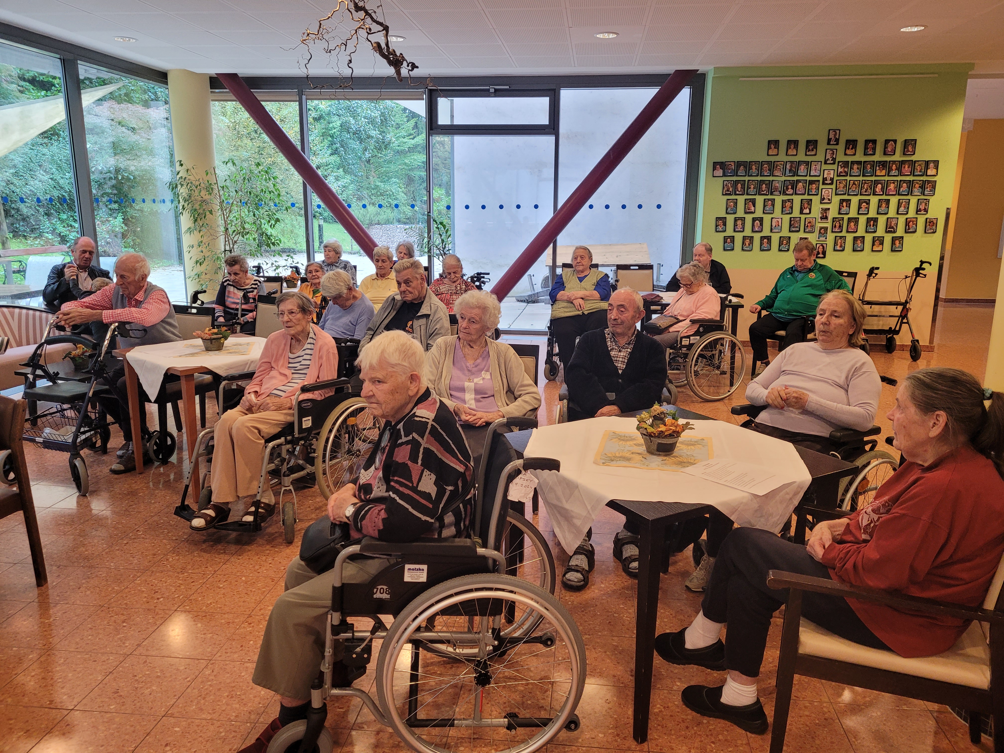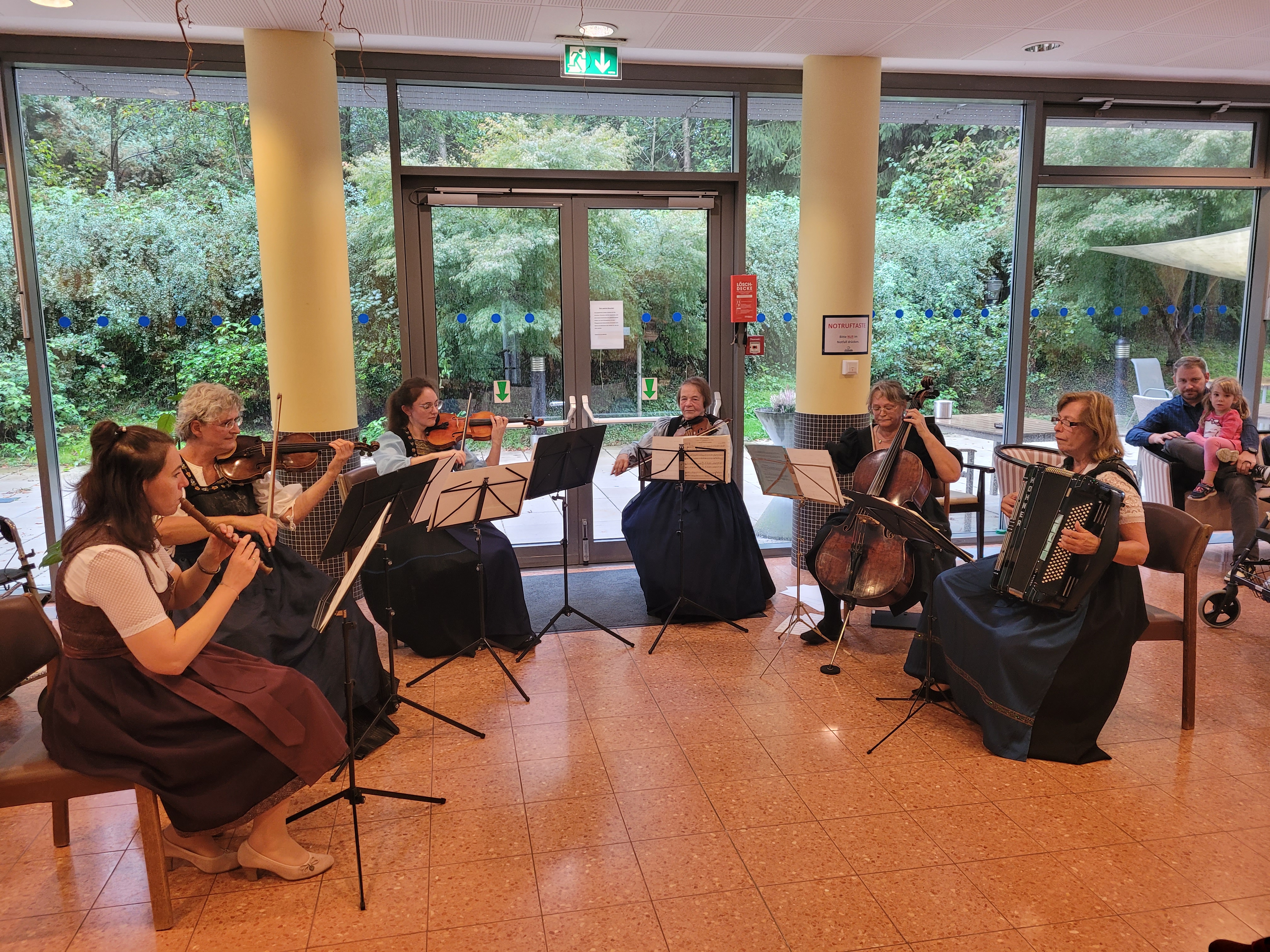 Ein besonders interessantes und abwechslungsreiches Programm voller Musik bot kürzlich das örtliche Kirchen- und Kammermusikensemble im SeneCura Sozialzentrum Pressbaum. Die sechs Musikerinnen unter der Leitung von Frau Strolz spannten einen Bogen an anspruchsvollen Stücken von internationaler Volksmusik bis zu bekannten Weisen aus dem Jüdischen Kulturkreis. Die musikbegeisterten Bewohner:innen lauschten dem Ensemble, bestehend aus drei Geigen, Akkordeon, Kontrabass und Flöte und so manche stimmten leise summend mit ein. Hausleitung Martina Schmit bedankte sich herzlich für diese stimmungsvolle Darbietung und betonte, was für eine große Bereicherung die verschiedenen Konzerte für die Seniorinnen und Senioren darstellt.