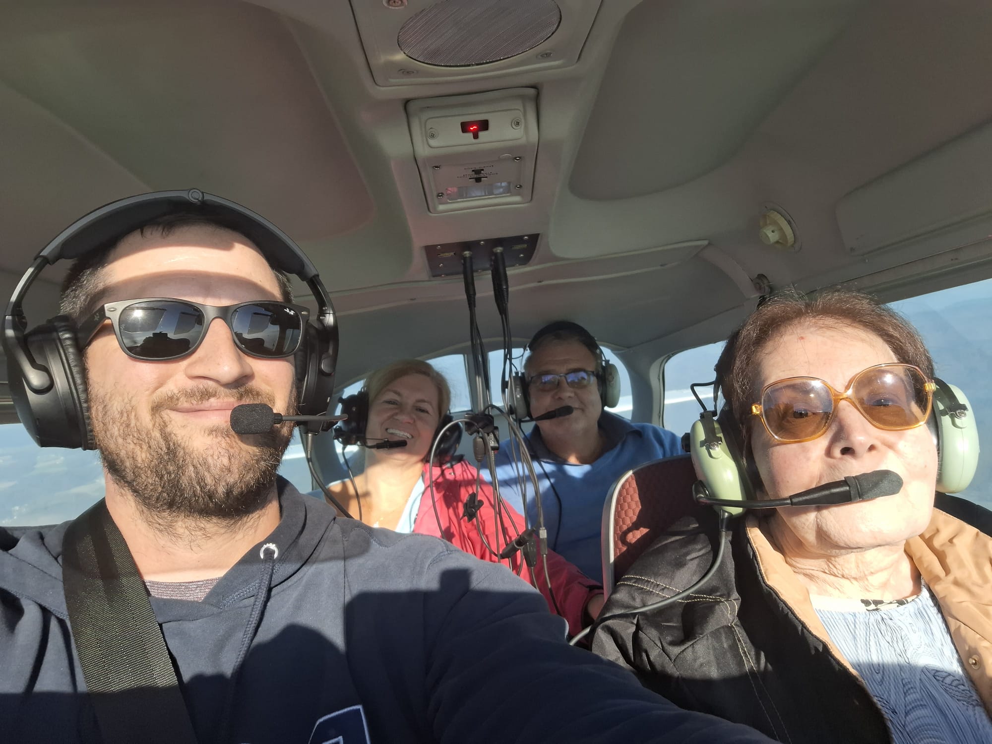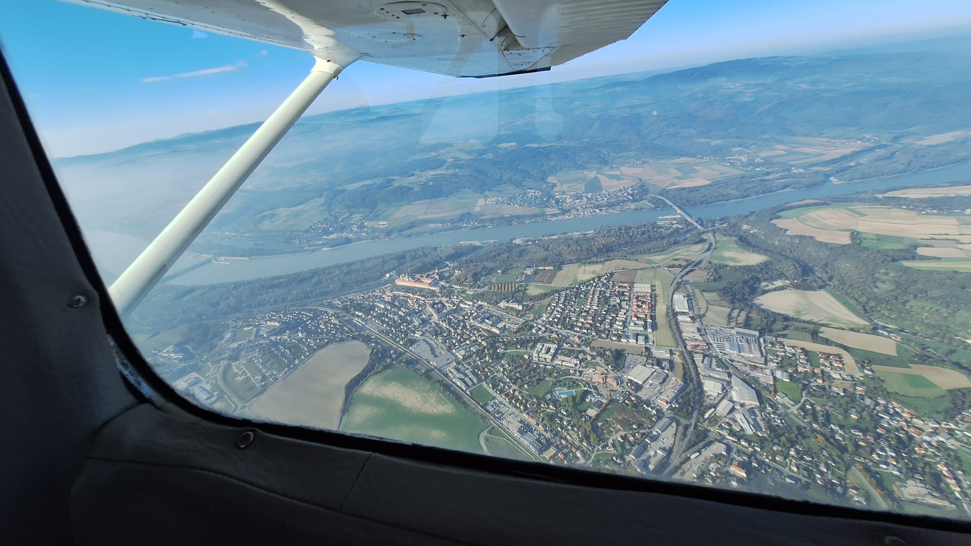 Nachdem der umsichtige Pilot, Marcus Despai, die viersitzige Cessna mit ihren faszinierten Fluggästen wieder sicher gelandet hatte, genehmigten sich alle einen Schnaps, um das außergewöhnliche Ereignis gebührend zu feiern. Zum Abschluss gab es noch eine Besichtigung des Flugplatzes, bevor es wieder zurück durch die herbstlich gefärbte Landschaft nach Pressbaum ging.