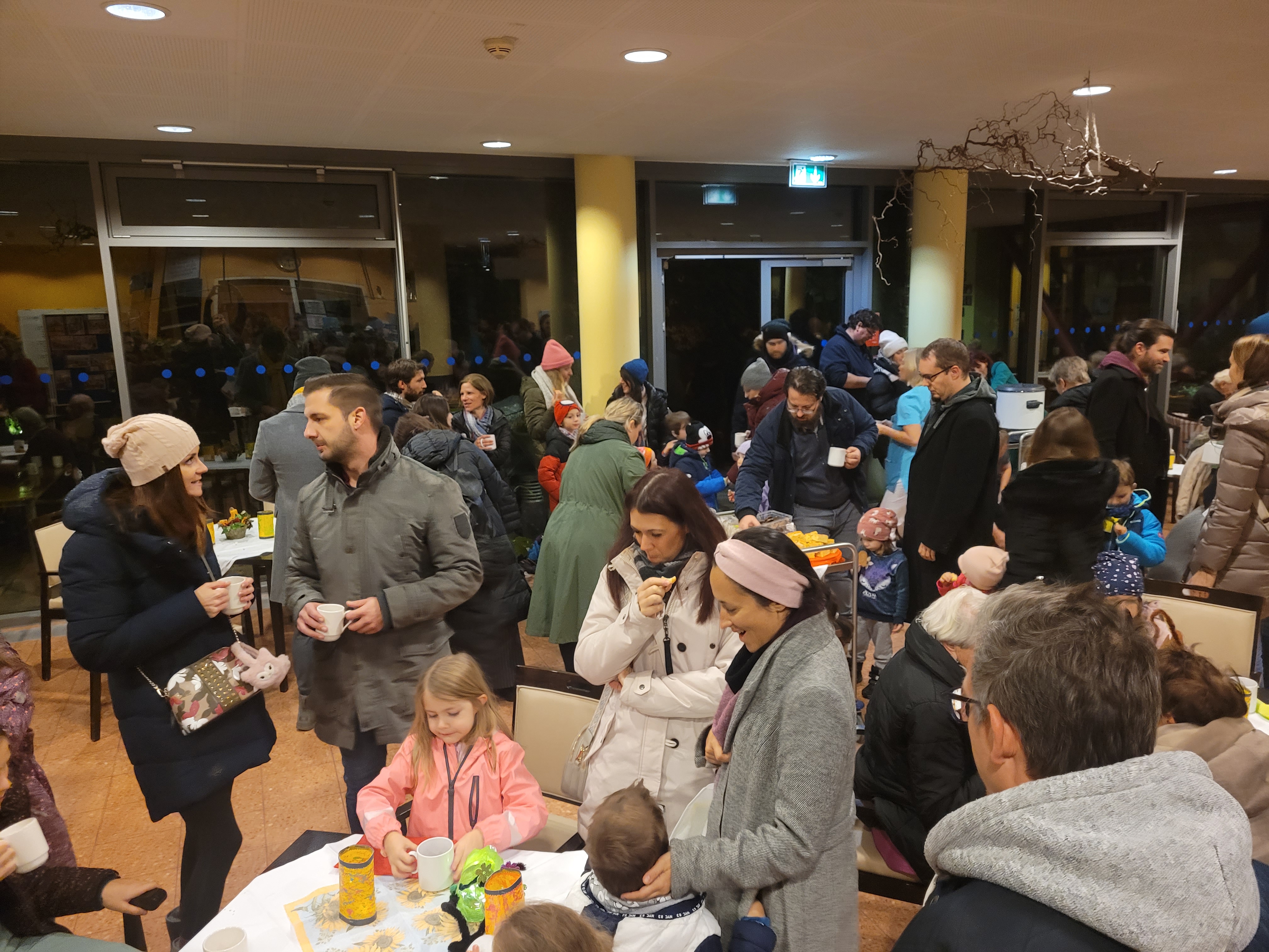 Ein ganz besonderes Laternenfest wurde im SeneCura Sozialzentrum Pressbaum gemeinsam mit den Kindern des örtlichen Kindergartens gefeiert. Schon den ganzen Tag lang freuten sich alle im Haus auf die gemeinsame Feier mit den Kindergartenkindern und manche konnten es kaum erwarten. Die Mädchen und Buben wanderten im Dunkeln mit ihren selbstgebastelten Laternen von Pressbaum zum Sozialzentrum, wo sie einen Lichterkreis bildeten und einige Lieder sangen. Natürlich durfte dabei „Ich gehe mit meiner Laterne“ nicht fehlen und alle Bewohner:innen stimmten laut und fröhlich mit ein. Im Anschluss teilten die kleinen Besucher:innen traditionsgemäß ihre Zuckerkipferl mit den Seniorinnen und Senioren und blieben noch lange, um gemeinsam heißen Punsch, Früchtebrot, Kekse und Lebkuchen zu genießen.