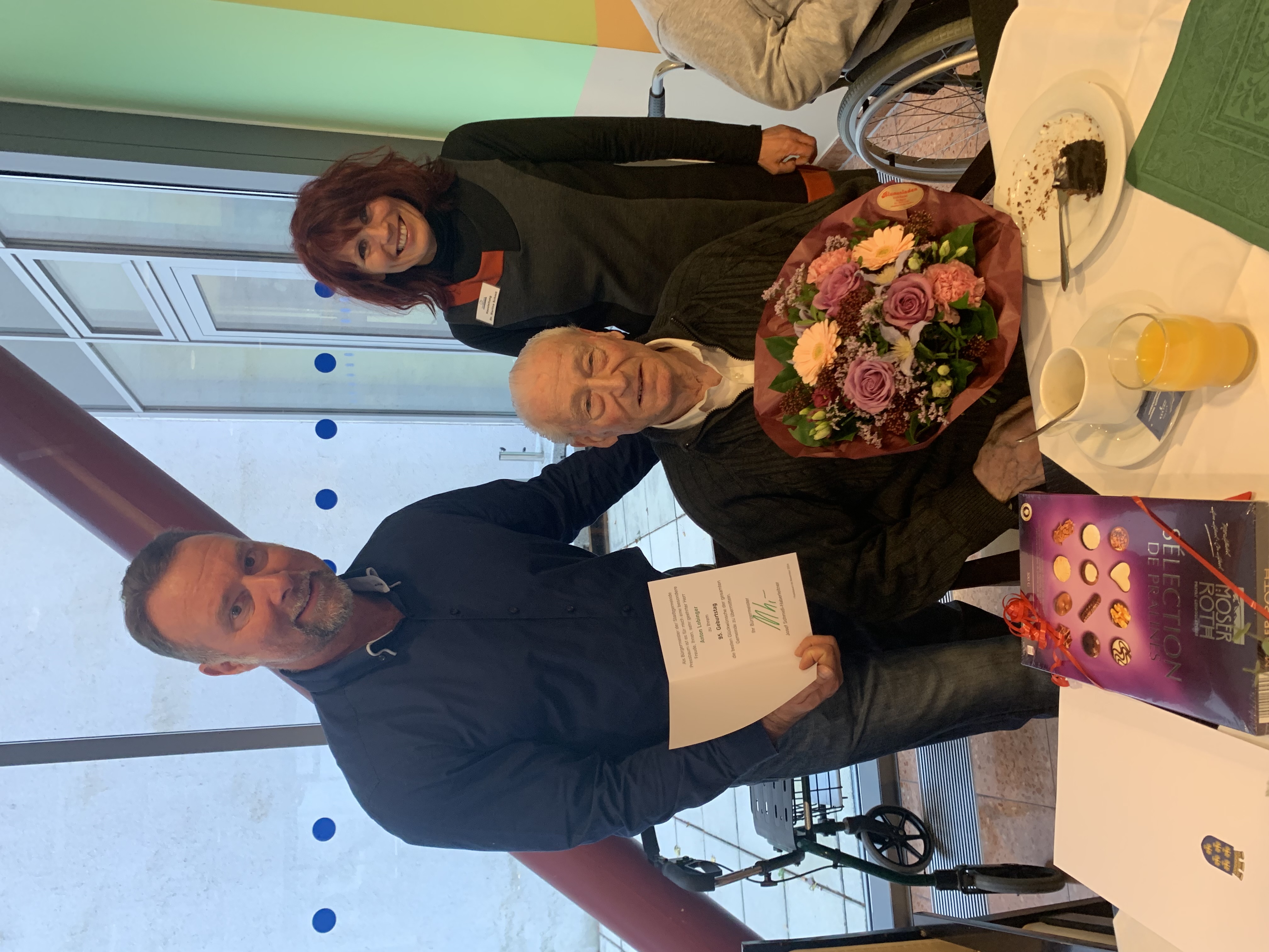 Für alle Bewohner:innen des SeneCura Sozialzentrums Pressbaum, die im November geboren sind, wurde eine besonders fröhliche Geburtstagsfeier mit Torte, Sekt, einem kleinen Geschenk und Gesang gefeiert. Gemeinsam wurde mit den Seniorinnen und Senioren sowie der Hausleitung Martin Schmit ein Geburtstagsständchen für alle Jubilare und Jubilarinnen gesungen. Auch der Pressbaumer Gemeinderat Josef Rothensteiner stimmte mit ein und überreichte anschließend allen Geburtstagskindern eine persönliche Grußkarte. Frau Niemecek und Herr Lobinger hatten besonders große Freude. Denn ihnen schenkte der Ehrengast anlässlich deren 95. Geburtstag einen wunderschönen Blumenstrauß. Die Schokoladetorte schmeckte am hübsch dekorierten Tisch ganz köstlich und bei einem Gläschen Sekt wurden noch lange Anekdoten erzählt und in Erinnerungen an frühere Feiern geschwelgt.