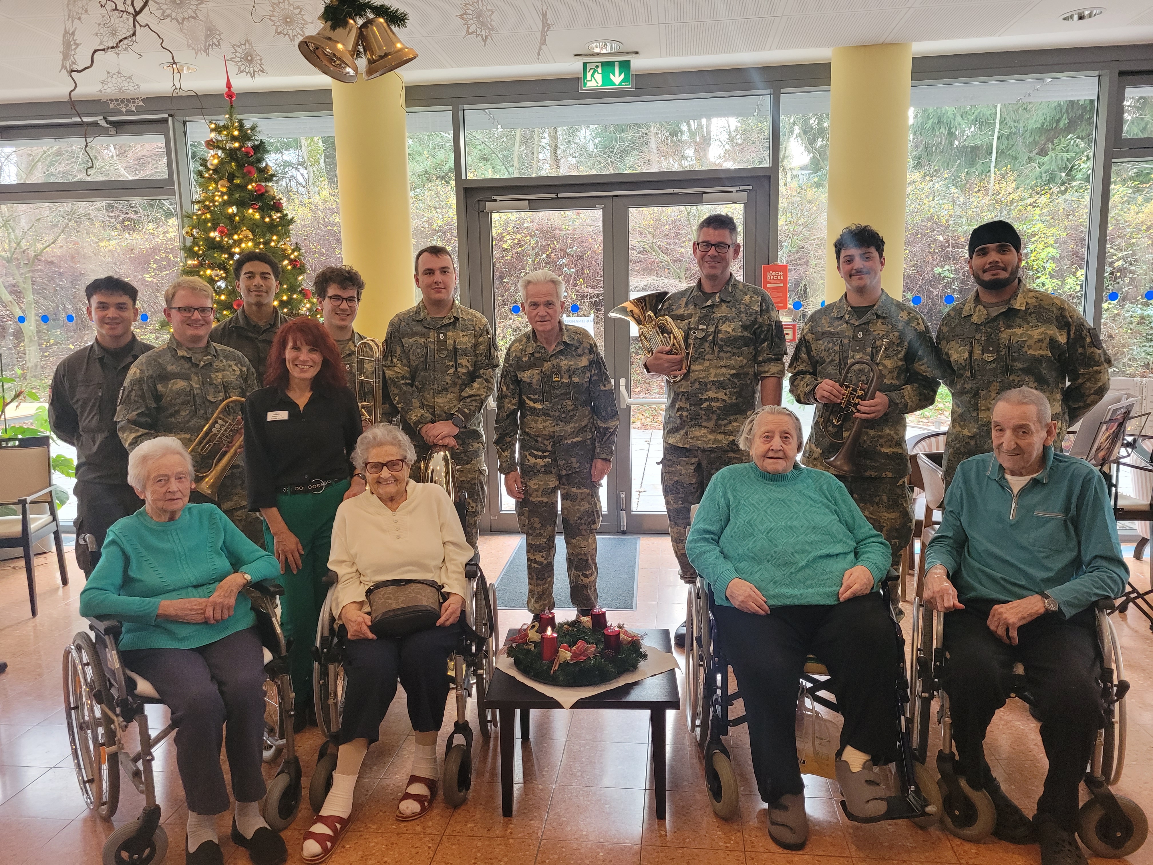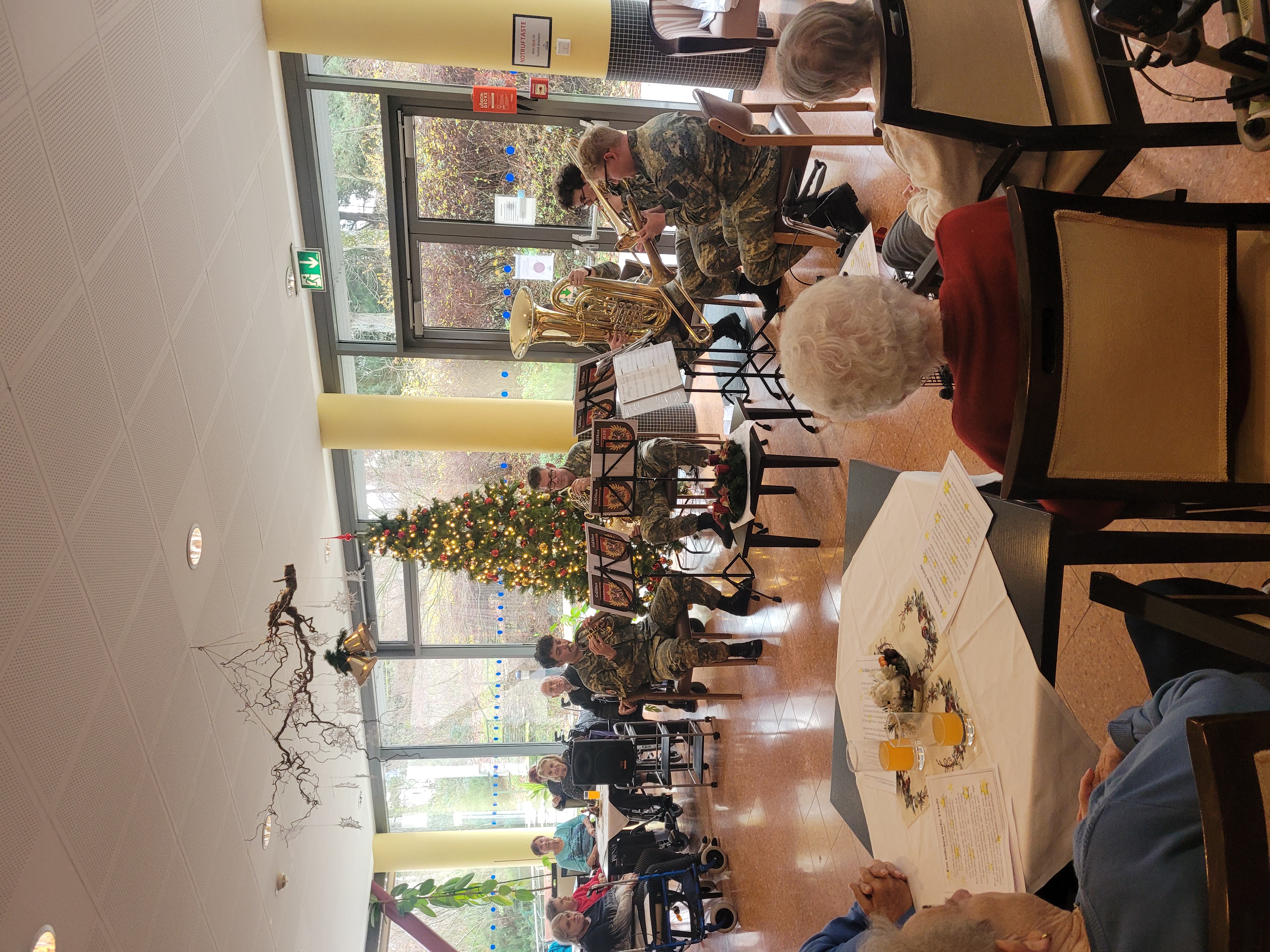 Alle Jahre wieder erfreut ein hochkarätiges Bläserquintett der Gardesmusik die Bewohner:innen des SeneCura Sozialzentrums Pressbaum mit einem stimmungsvollen Adventkonzert. Die Soldaten des österreichischen Bundesheeres unter der Leitung von Oberstleutnant Prof. Eidler spielten ein teils heiteres teils besinnliches Programm aus alten sowie modernen Weihnachtsliedern. Dazwischen wurden nette Geschichten und Gedichte vorgelesen, denen die Seniorinnen und Senioren andächtig lauschten. Einer jahrelangen Tradition folgend, beschenkte Herr Eidler alle Zuhörer:innen mit einer hübschen Grußkarte mit lieben Wünschen und einem Gedicht von Peter Rosegger, das er auch höchstpersönlich vortrug. Die Bewohner:innen, die sich schon lange auf diesen besonderen Nachmittag freuten, zeigten ihre Begeisterung mit einem lauten Applaus. Im Namen aller bedankten sich die Bewohnerin Marie Hermanek bei allen Musikern und Vortragenden von ganzem Herzen. „Einer Bitte des Ensembles konnten wir leider nicht nachkommen“, schmunzelte die Hausleiterin Martina Schmit. „Erst am Ende zu applaudieren, ist uns auch heuer wieder nicht gelungen. Dafür war die Begeisterung und Freude einfach viel zu groß“