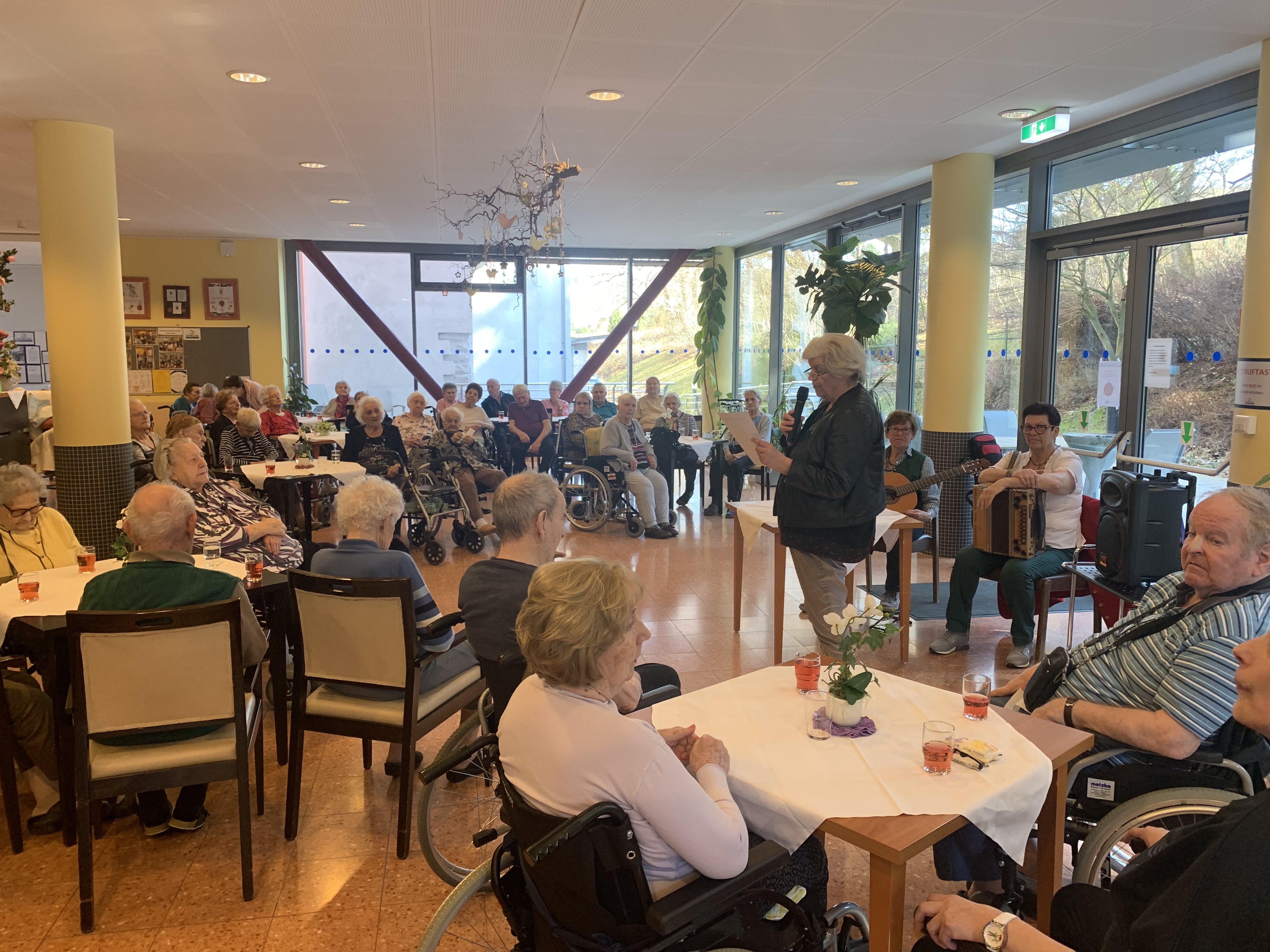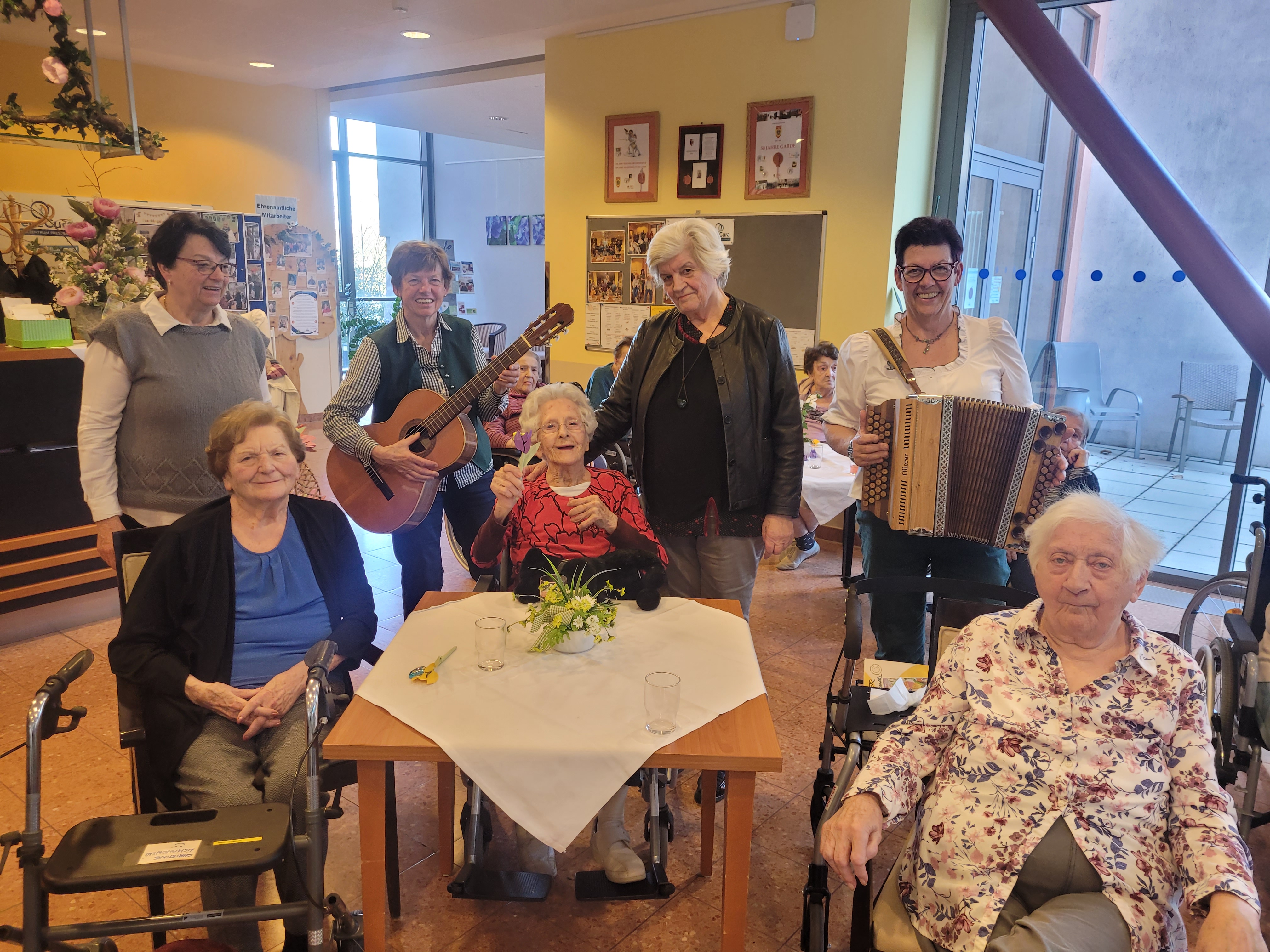 Im SeneCura Sozialzentrum Pressbaum herrscht große Vorfreude auf den Frühling. Während auf der Terrasse bereits bunte Violen, Narzissen und Hyazinthen gepflanzt werden, wird im Haus der Abschied vom Winter mit dem Musikensemble „MusiTanten“ gefeiert. Die beiden Musikerinnen begeisterten das Publikum mit bekannten Volksliedern, die ehrenamtlichen Mitarbeiterinnen, Hermine Winter, erzählte Wissenswertes über den Frühling und Annemarie Wagner las passende Gedichte und Geschichten vor. Die Einladung zum Mitsingen wurde von den Seniorinnen und Senioren mit großer Freude angenommen. Jetzt hoffen die Bewohner:innen auf sonnige Tage, um den Frühling auch schon draußen im Garten genießen zu können.