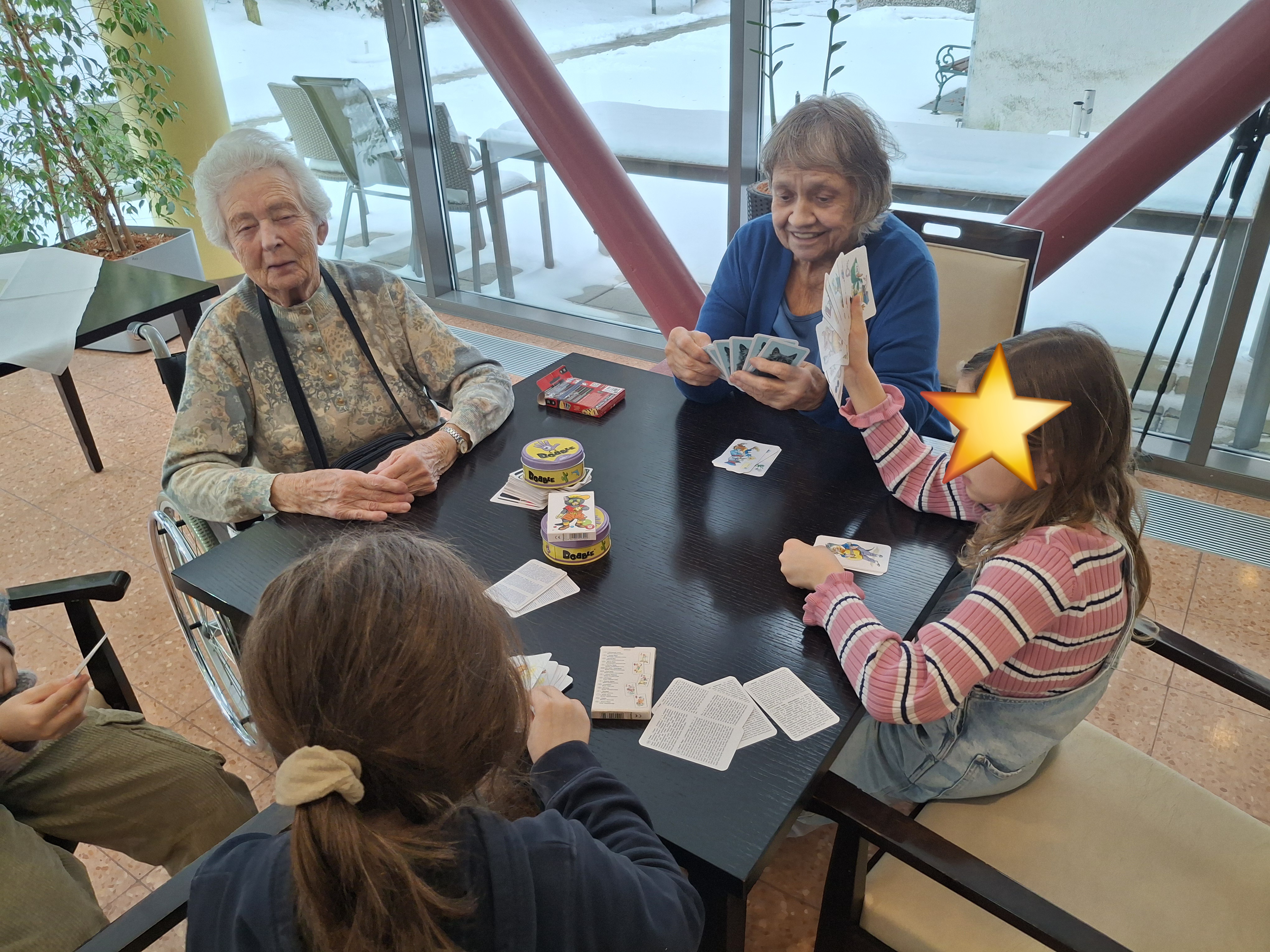 Im SeneCura Sozialzentrum Pressbaum durften sich die Seniorinnen und Senioren über besonders lieben Besuch freuen. Die „Regenbogenfisch-Klasse“ der Volkschule Sacre Coeur kam zum lustigen Generationen-Spieletag vorbei. Nachdem die Kinder einen Tanz aufgeführt und ein Gedicht vorgetragen hatten, packten sie ihre mitgebrachten Lieblingsspiele aus und schon ging‘s los. Gemeinsam mit den Bewohner:innen wurde gespielt, geraten und viel gelacht. Jung und Alt verbrachten gemeinsam eine wunderschöne Zeit mit Memory, Mensch ärgere dich nicht, Uno und noch viel mehr. Herzlichen Dank an die Pädagoginnen, die regelmäßig mit verschiedenen Klassen zu Besuch kommen. Die Senior:innen freuen sich schon auf das nächste Mal.