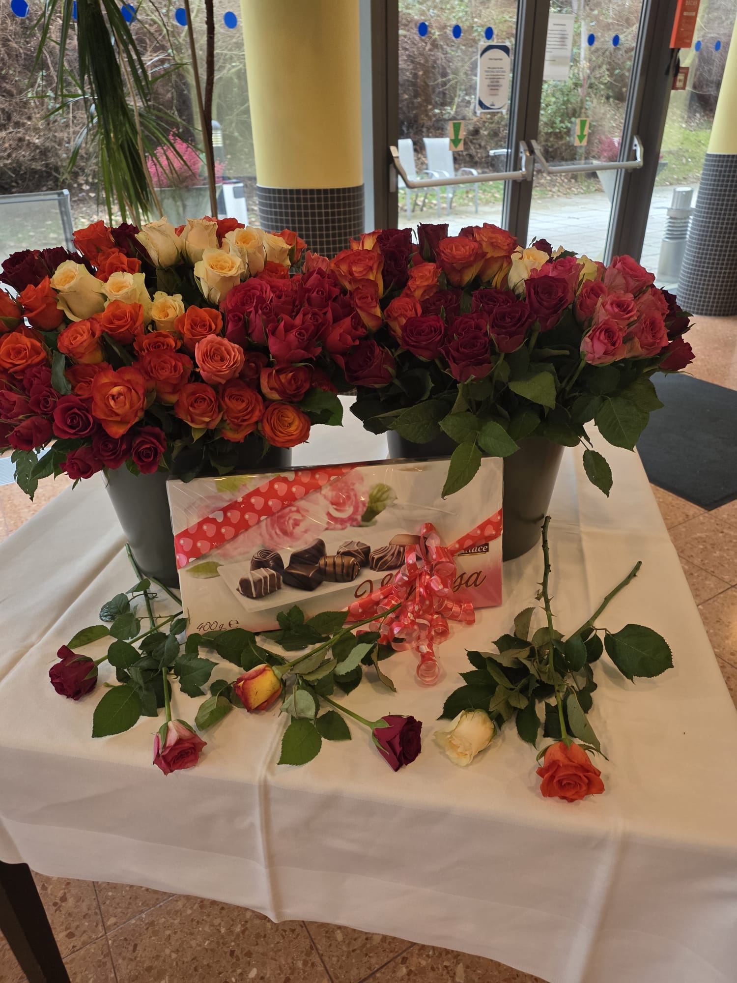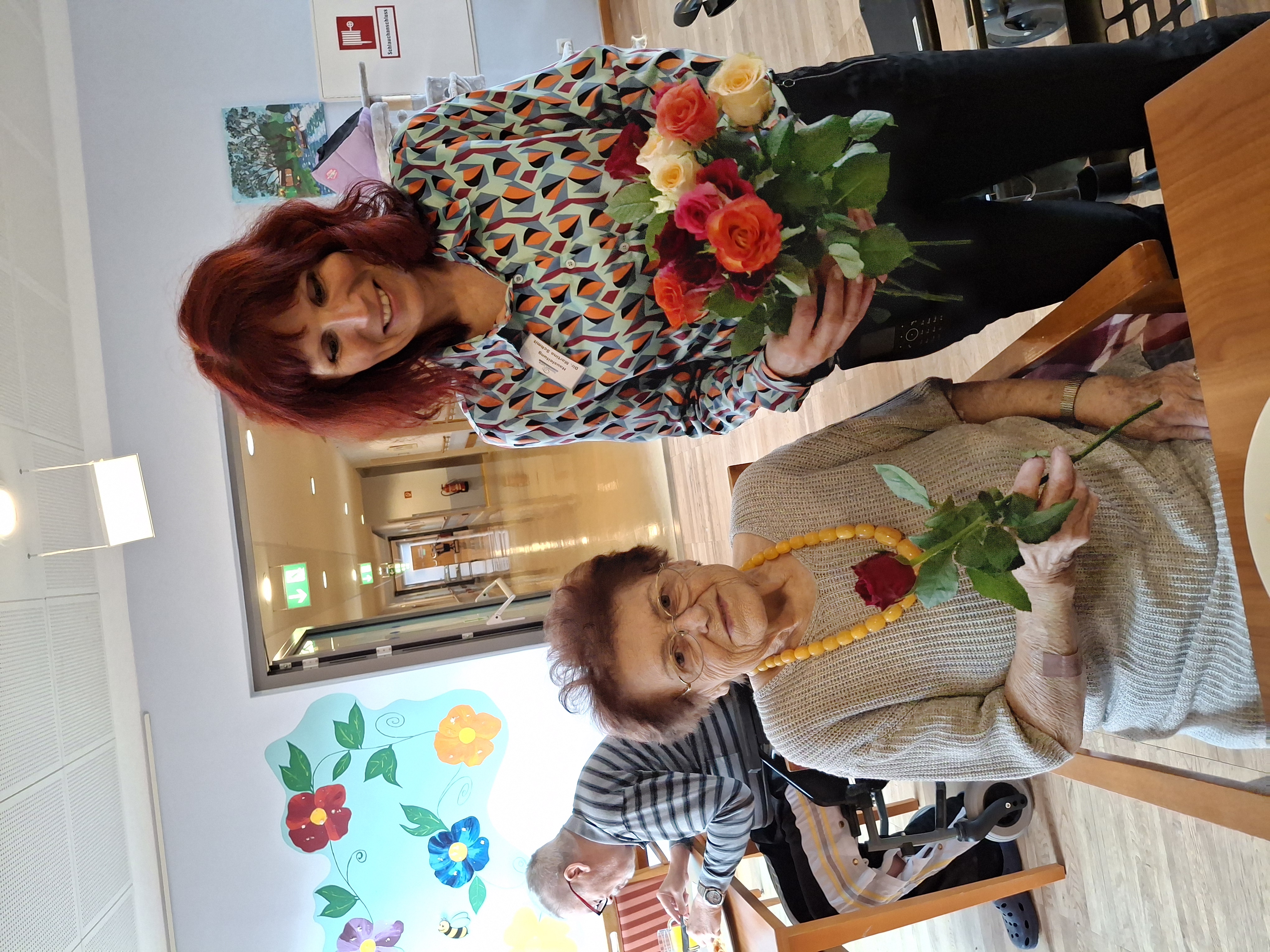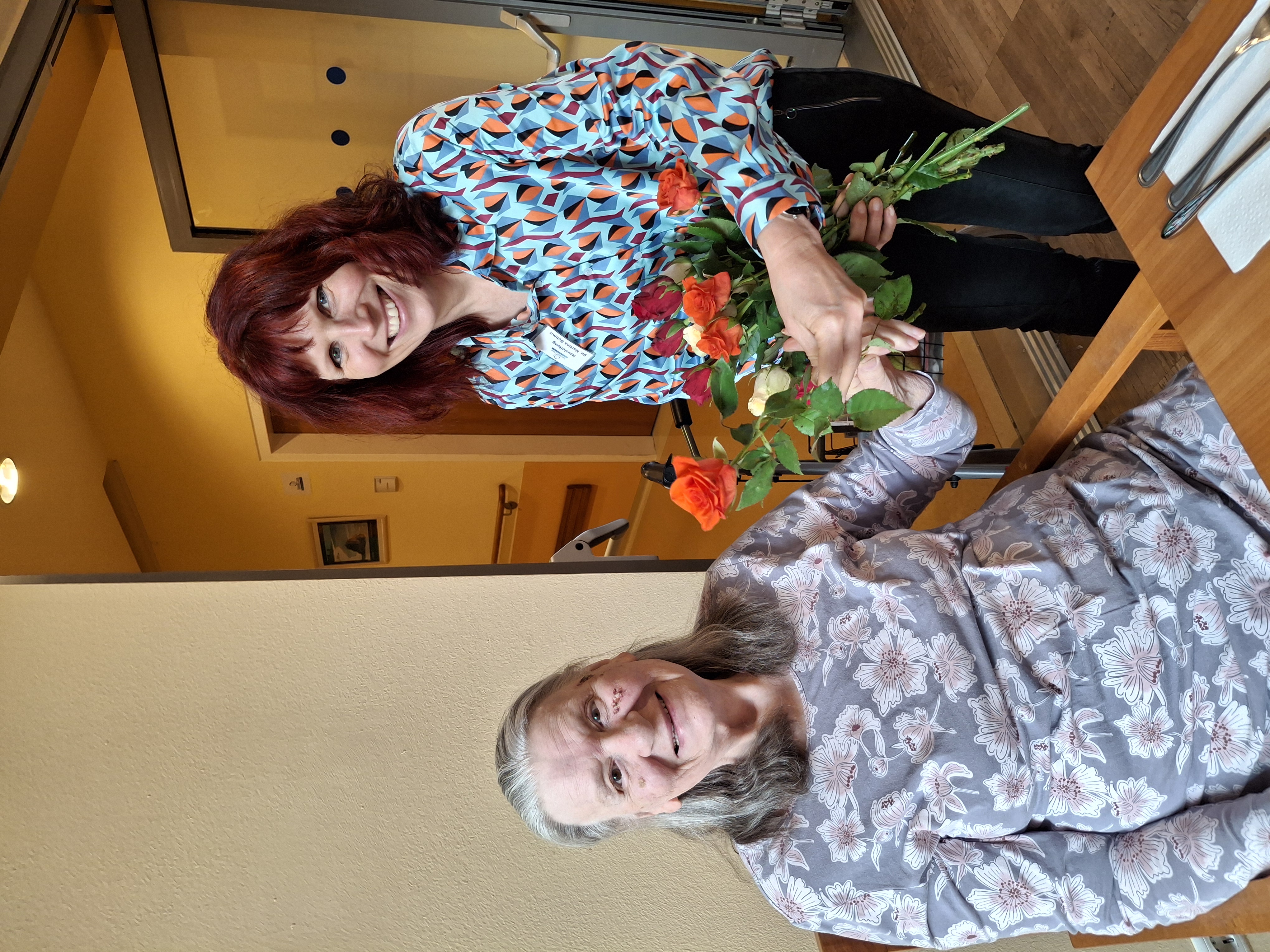 Auch die Mitarbeiter:innen nahmen die bunten Rosen gerne entgegen und freuten sich über die nette Geste und die lieben Worte der Direktorin.